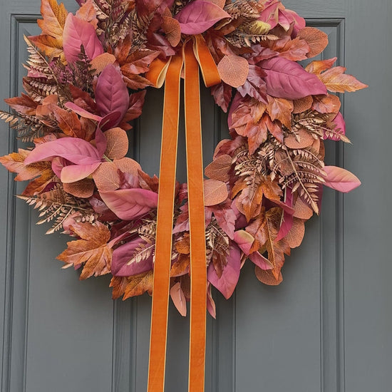 Rust and Copper Fall Wreath with Velvet Bow